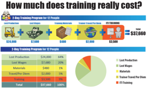 actual cost of the training. The bulk of the cost (nearly 84%) typically lie in Lost Production and Lost Wages (check out What is the True Cost of Training?).
